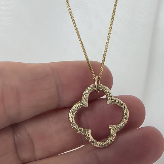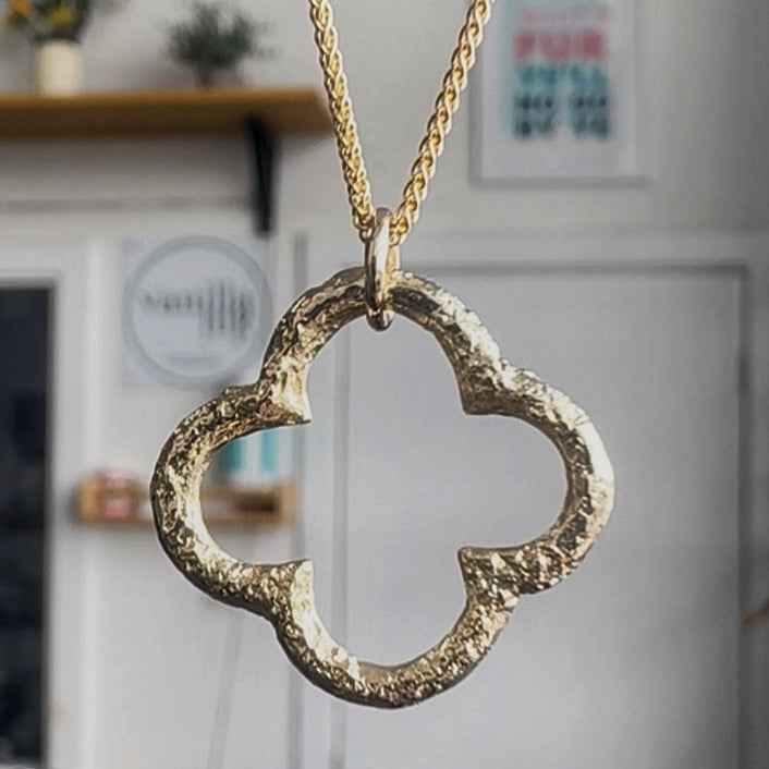 Inspired by the architecture of Glasgow and created to celebrate the city's 850th anniversary, this beautiful quatrefoil has been handcarved in wax then cast in solid 9ct yellow gold.